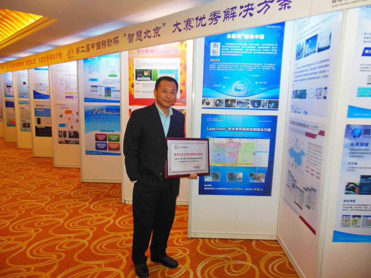 在2013年第二届智慧北京大赛中,安恒集团携水联网®管网漏损解决方案参加大赛角逐,最终经过历时近4个月的角逐,经过专家初评、6场分赛路演、专家综合评审等各个环节,从60个入围项目中脱颖而出,喜获智慧北京大赛的优秀解决方案奖。